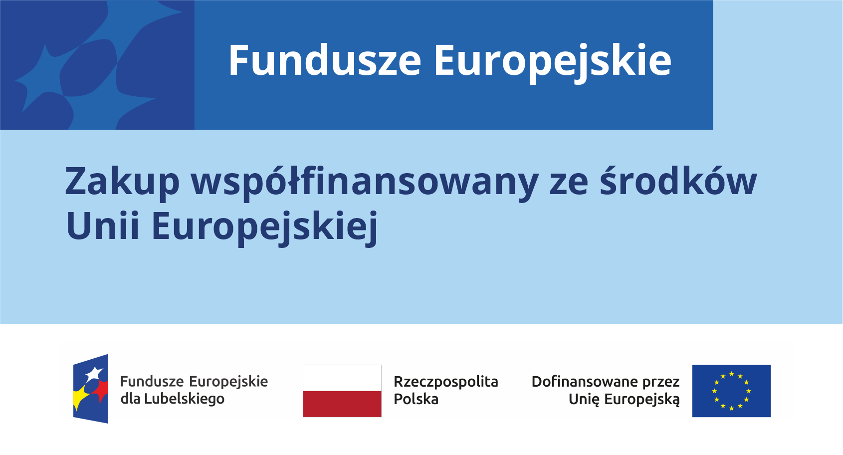 współfinansowany ze środków Europejskiego Funduszu Społecznego Plus (EFS+) w ramach Programu Fundusze Europejskie dla Lubelskiego 2021-2027 Priorytet IX Zaspokajanie potrzeb rynku pracy, Działanie 9.1 Aktywizacja zawodowa – projekty PUP.
