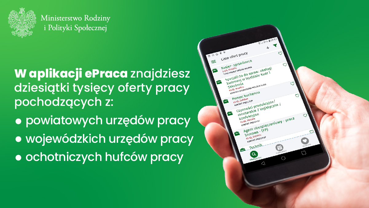 Zachęcamy Państwa do korzystania z nowo wydanej aplikacji mobilnej ePraca.