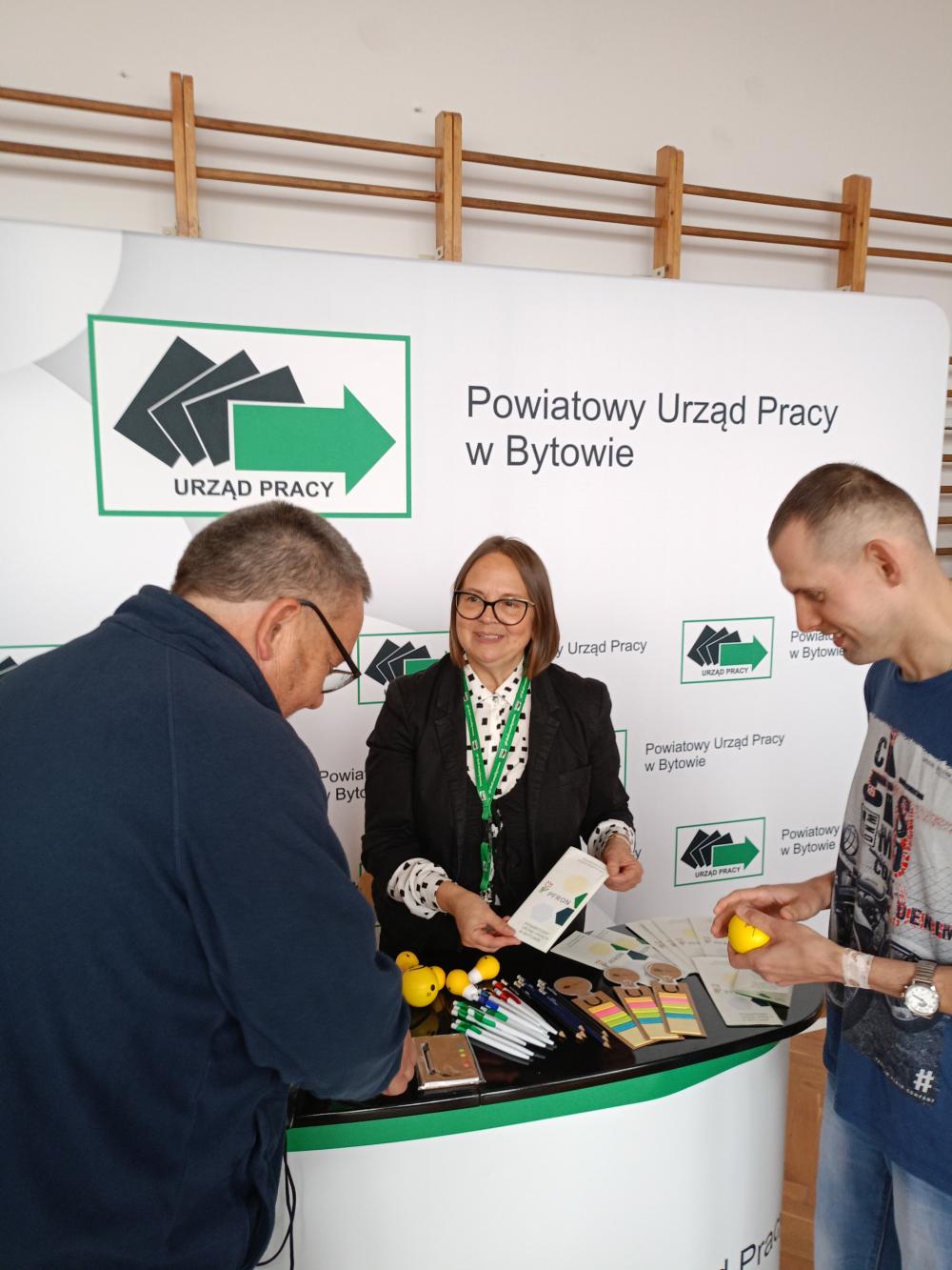 Powiatowy Urząd Pracy w Bytowie również uczestniczył w wydarzeniu. Nasz doradca zawodowy - Krystyna Redlarska - Król zachęcała osoby z niepełnosprawnościami do podejmowania aktywności zawodowej oraz informowała o dostępnych formach wsparcia oferowanych przez urząd, m.in. stażach, szkoleniach czy bonie na kształcenie ustawiczne.
