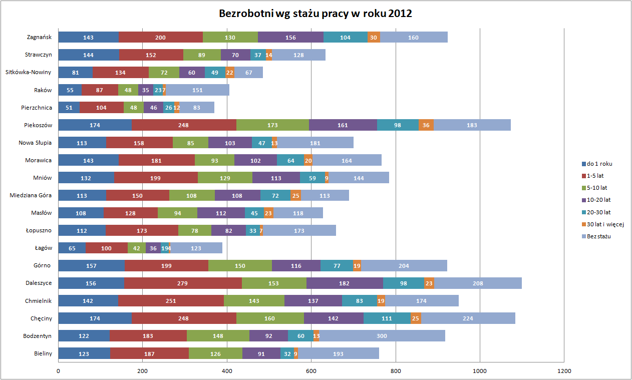 Statystyki - Stan bezrobocia w gminach 2012 - Powiatowy Urząd Pracy w Kielcach