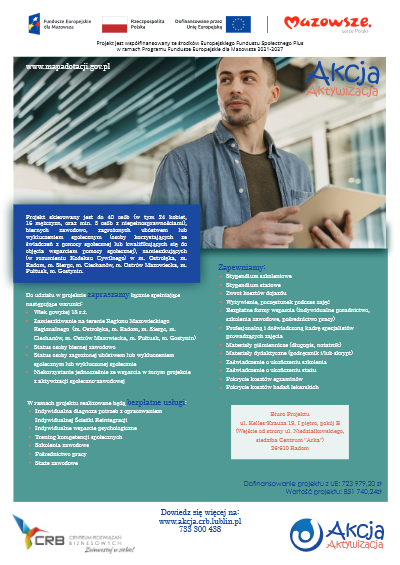 Fundacja Centrum Rozwiązań Biznesowych zaprasza do udziału w projekcie: „Akcja Aktywizacja”